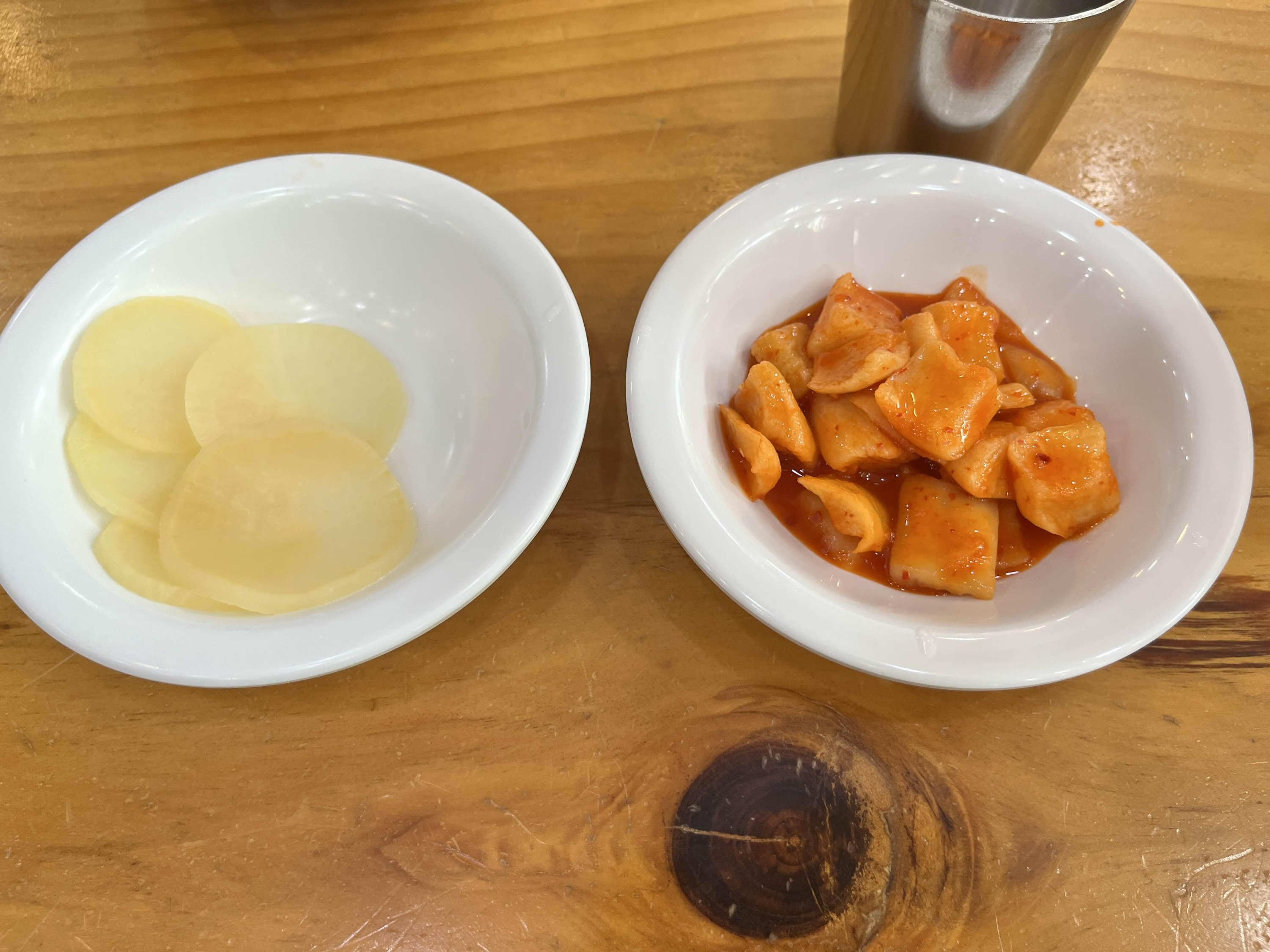 기본 밑반찬으로 단무지 + 깍두기를 주시네요!