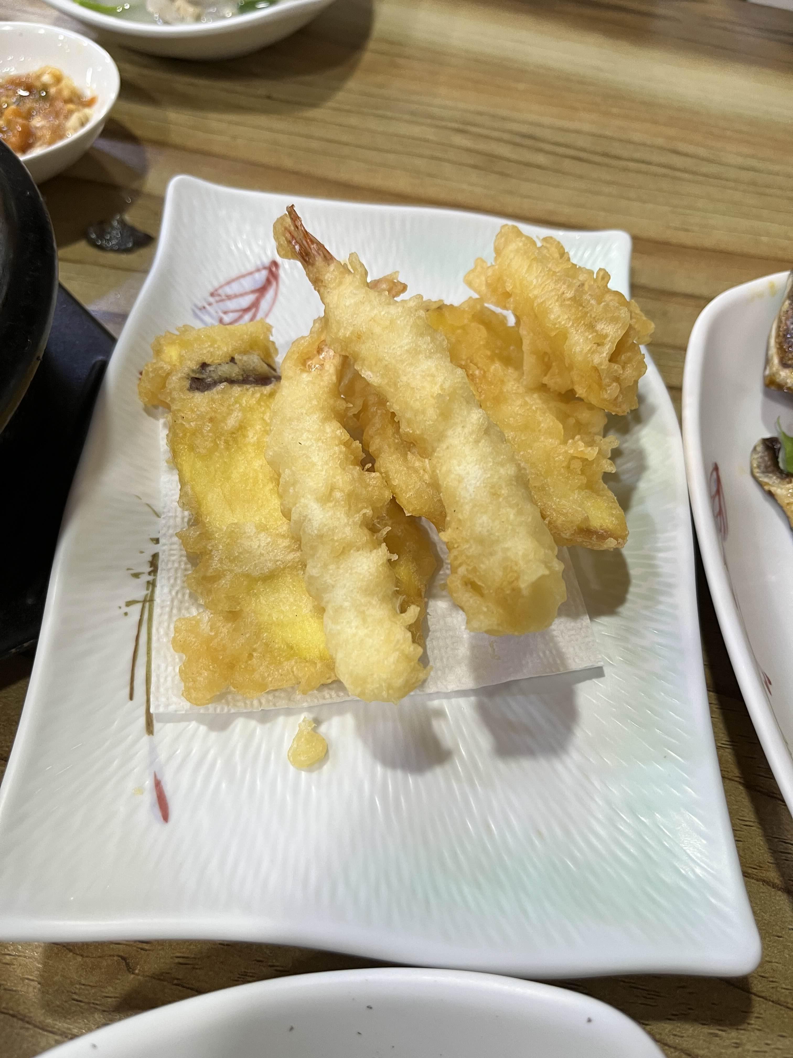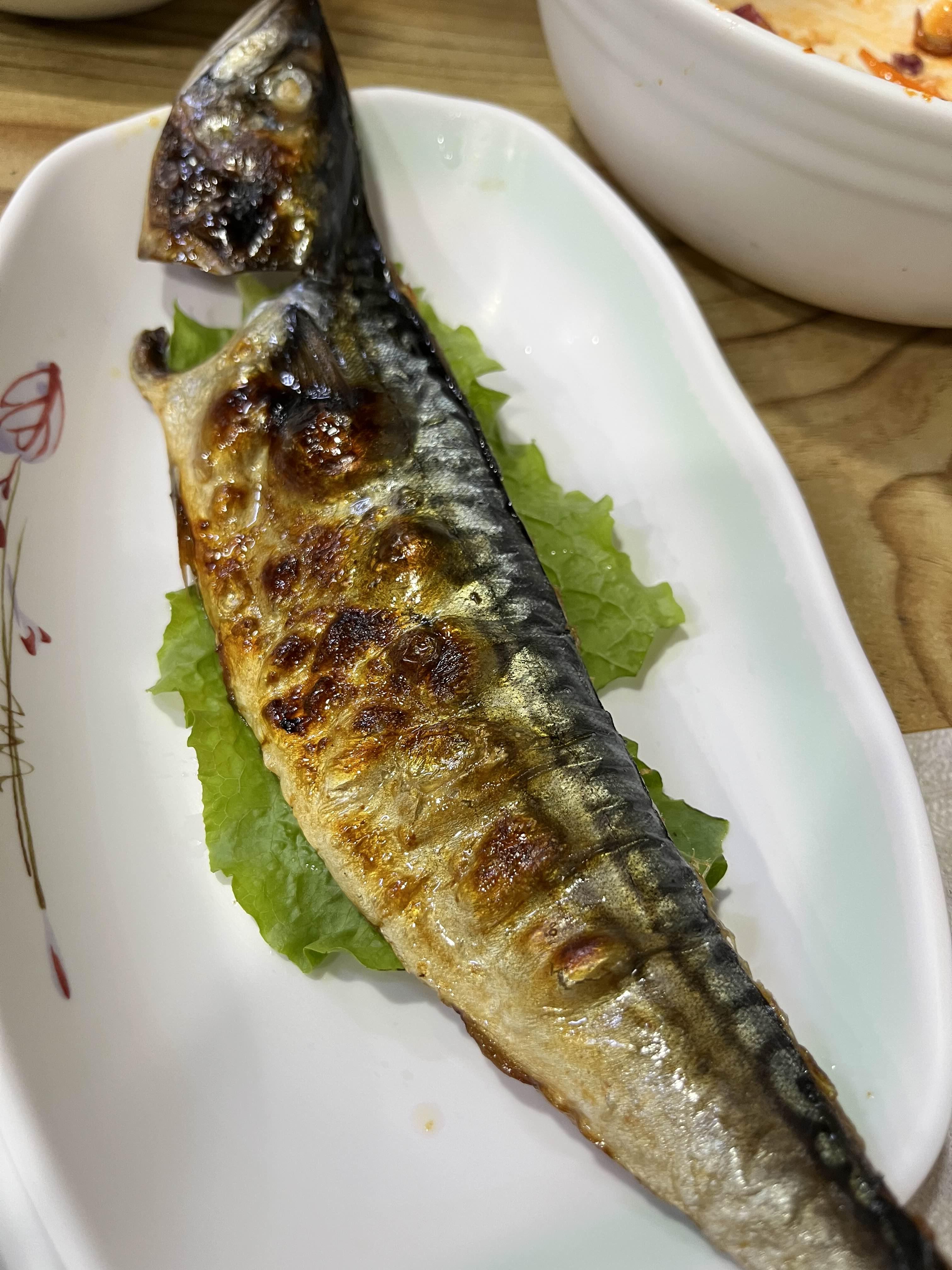 그런데, 2차 상차림으로, 튀김, 고등어, 탕, 낙지회