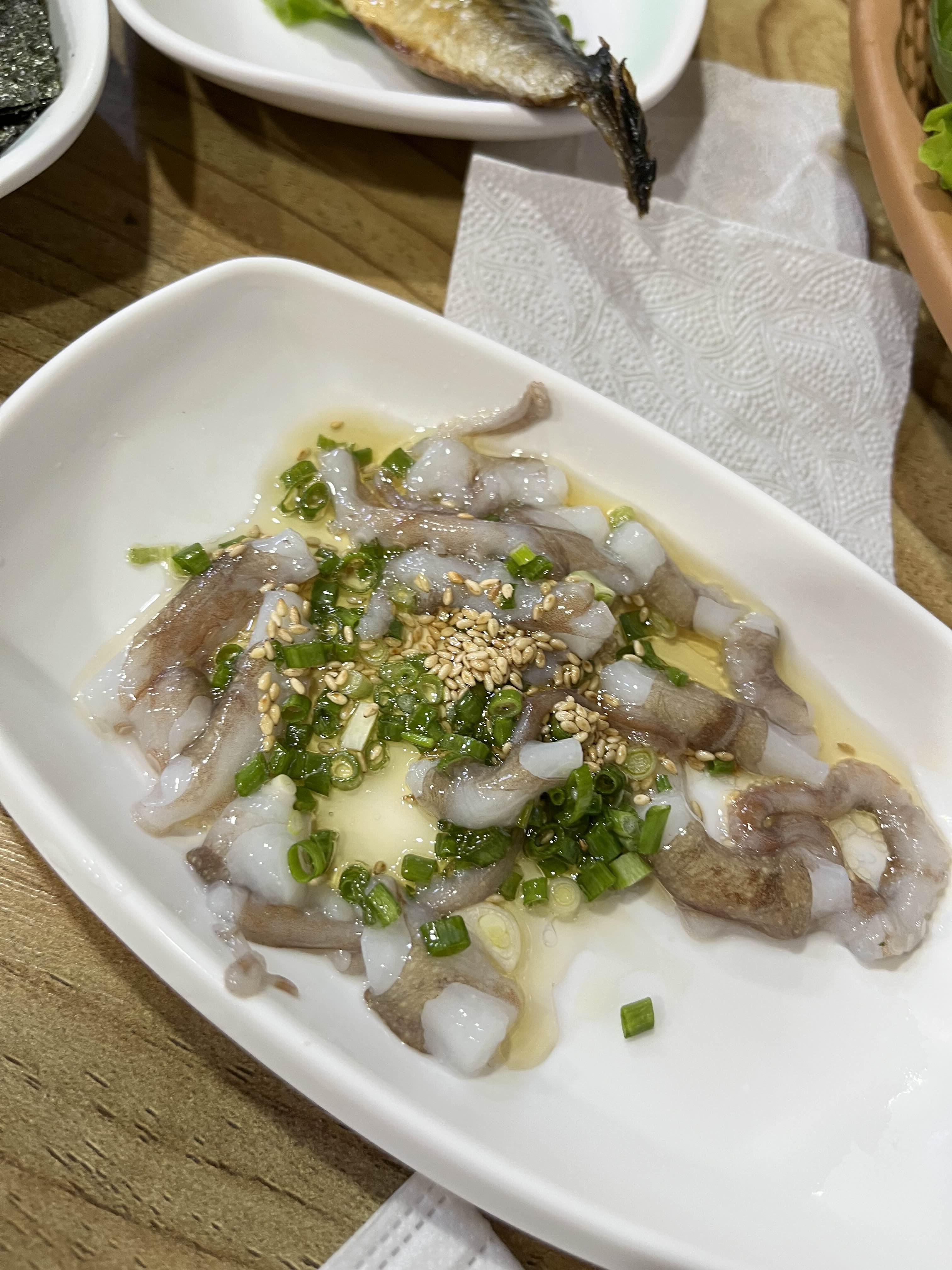 추가적으로 밑반찬 이 싱싱한 회 가 나왔어요!!