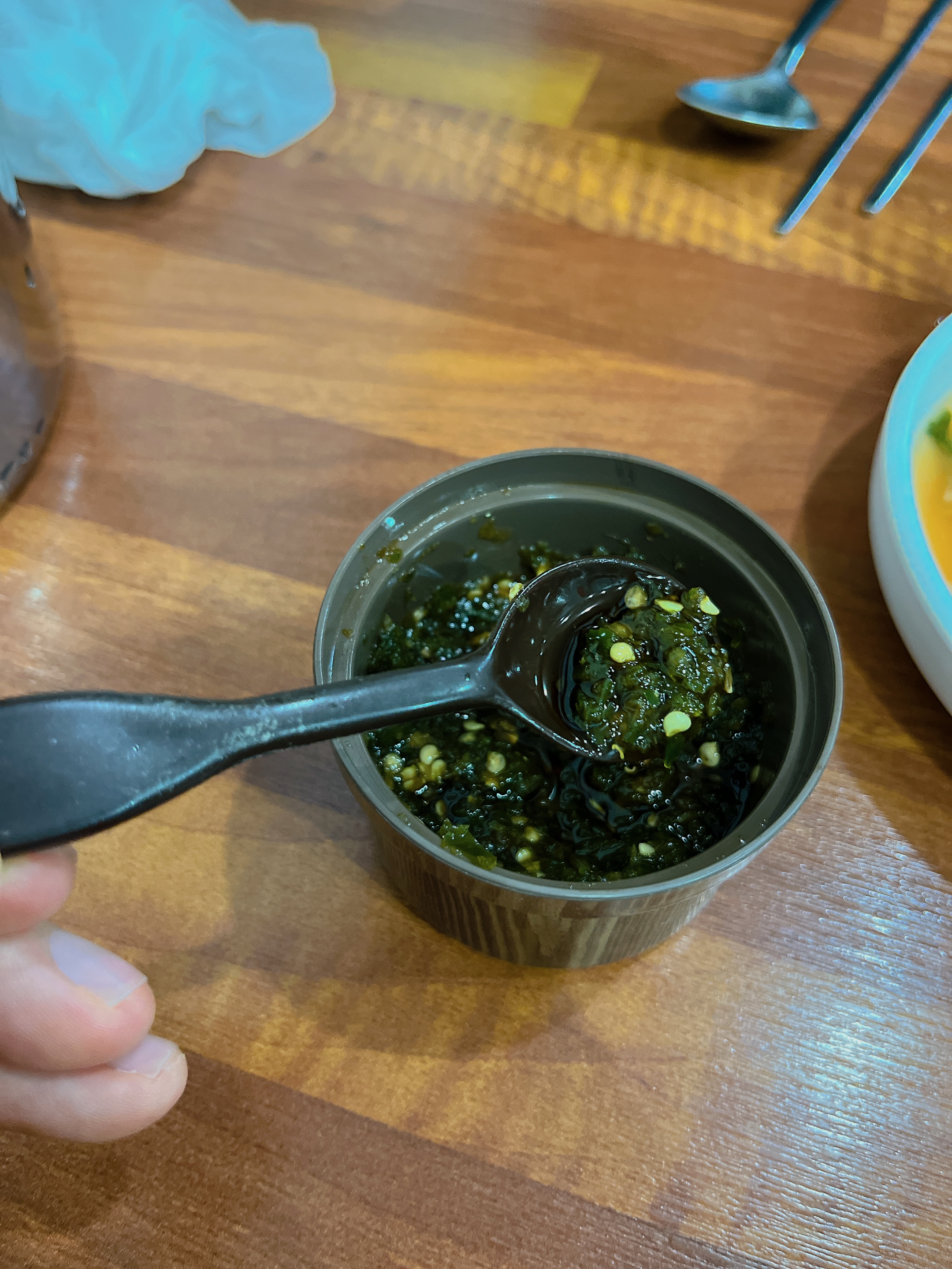 주인아주머니께 여쭤보니, 다진 고추로 만든 다진 양념 가 따로 있다고 하시면서 주셨어요!!