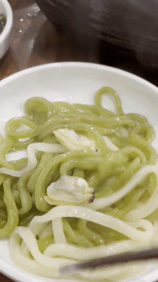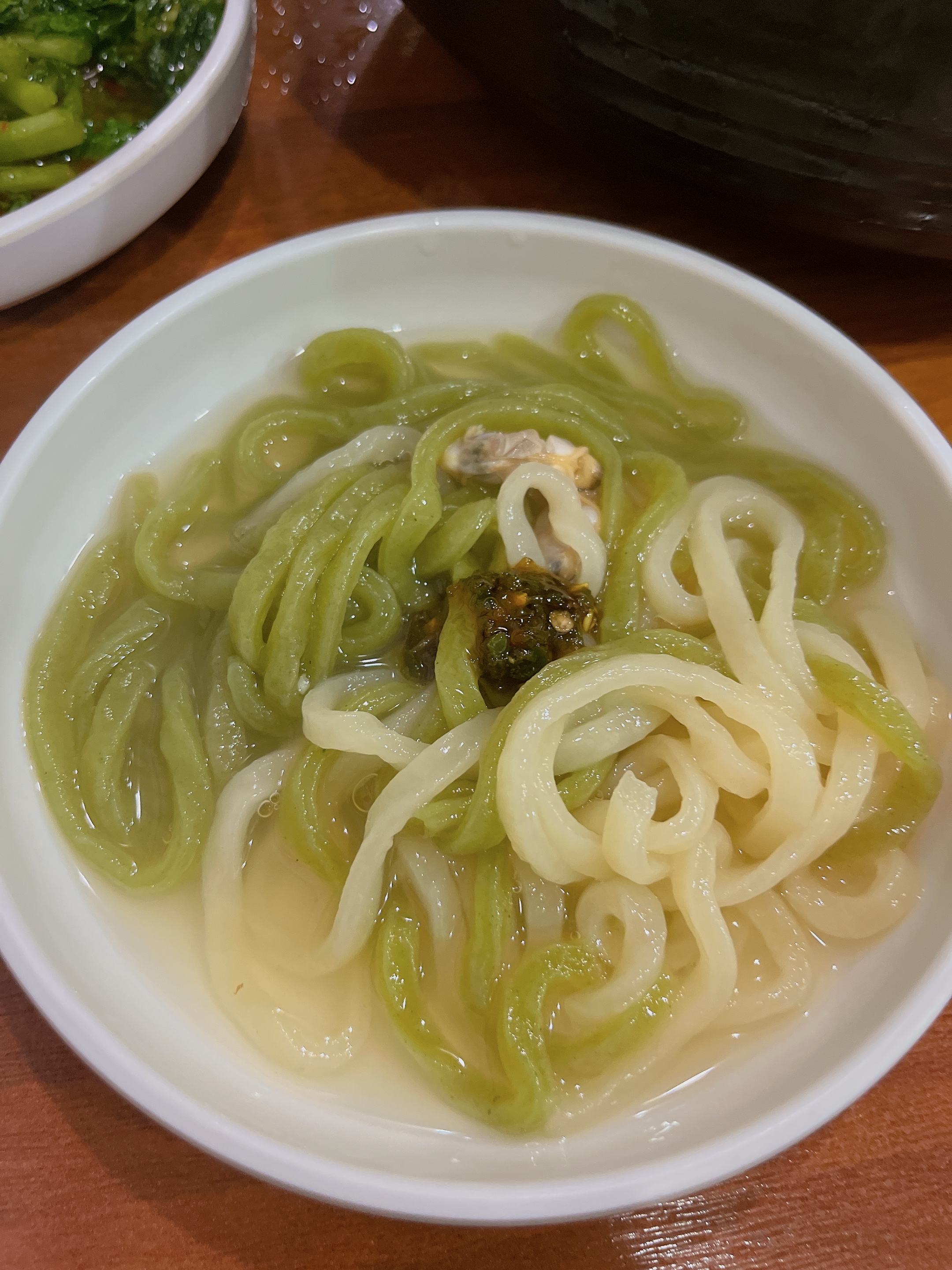 일단 바지락이 엄청나게 많았고, 면이 흰면과 초록색 면이 있어서 신기했어요!!