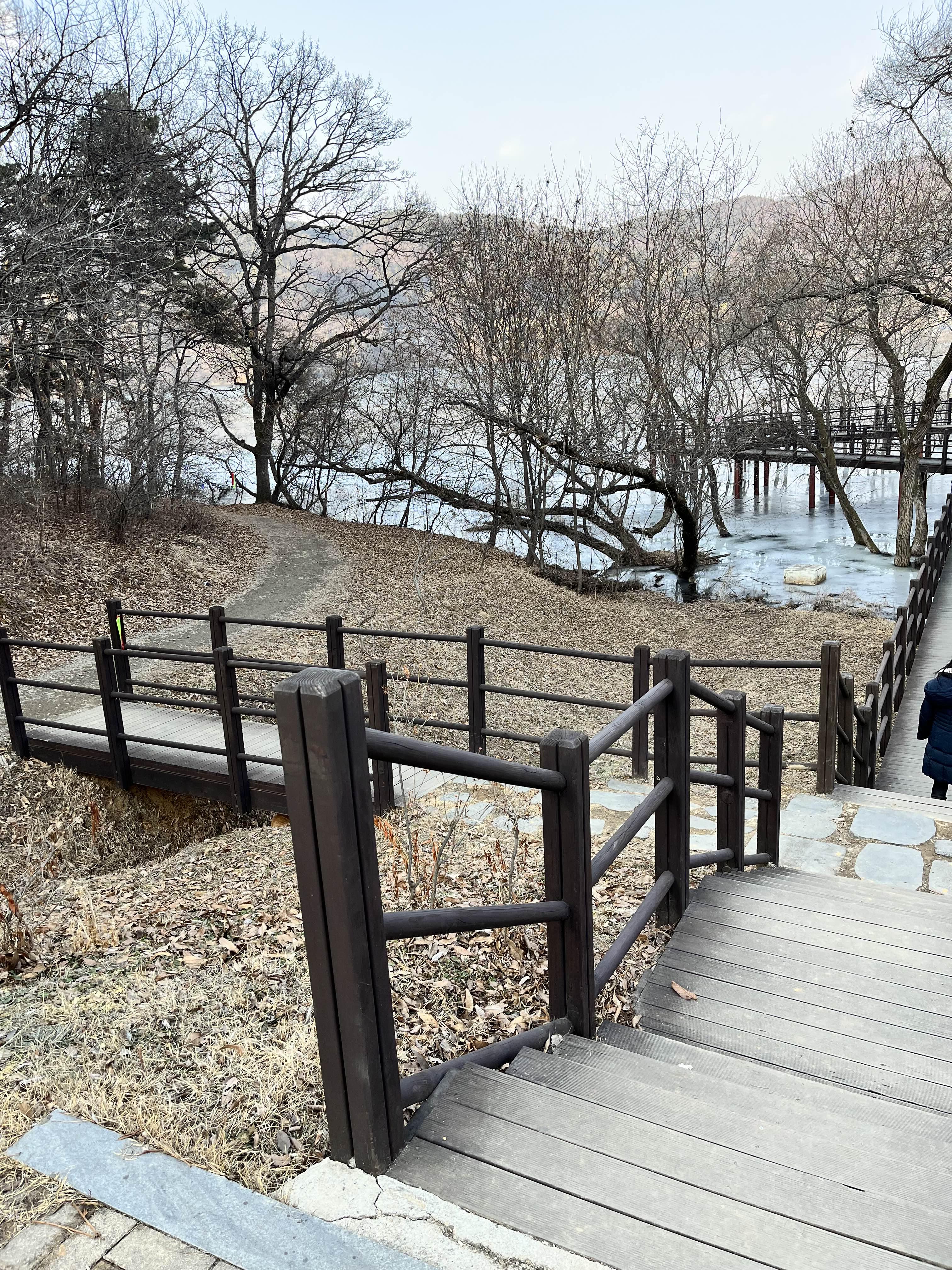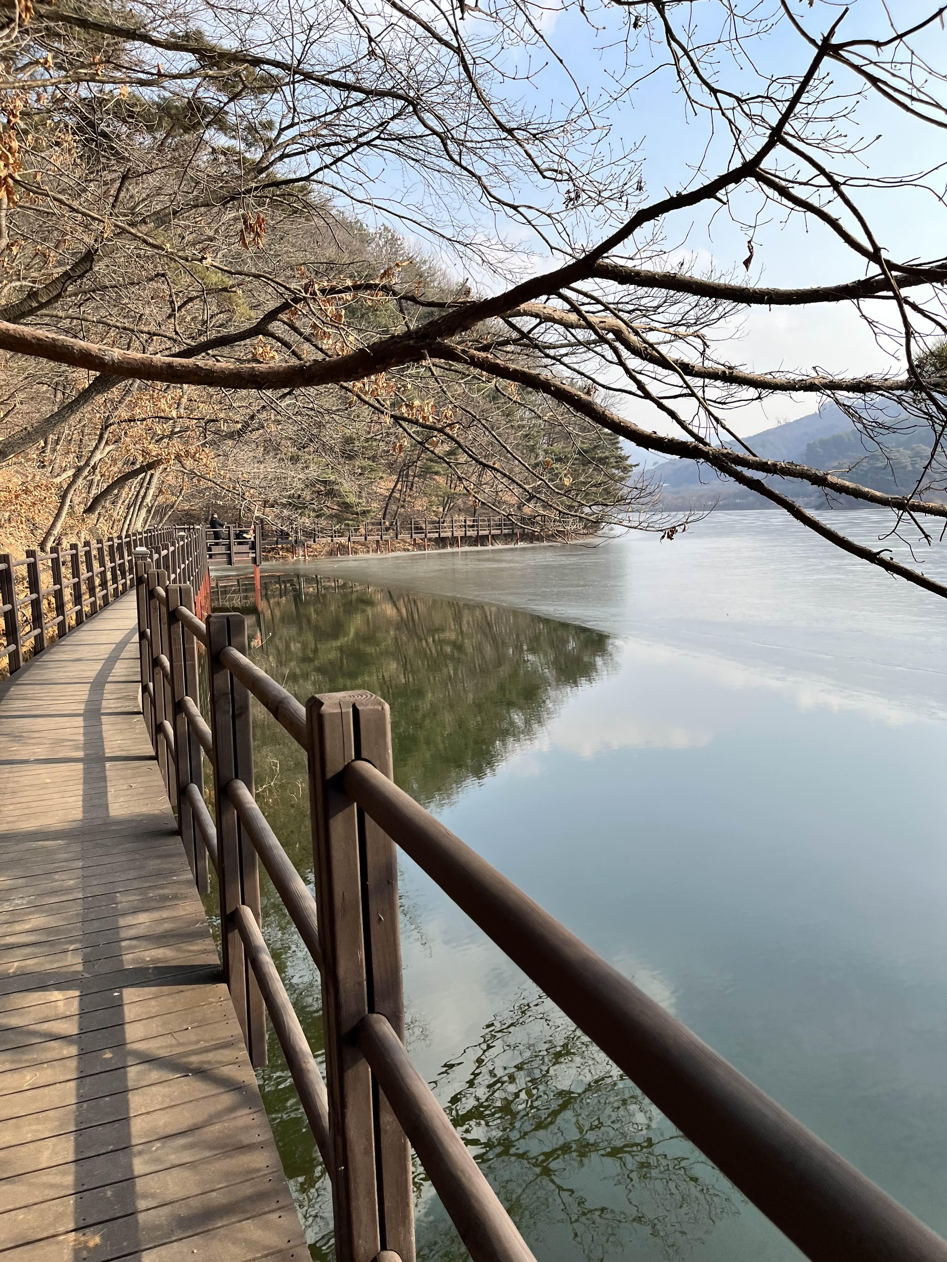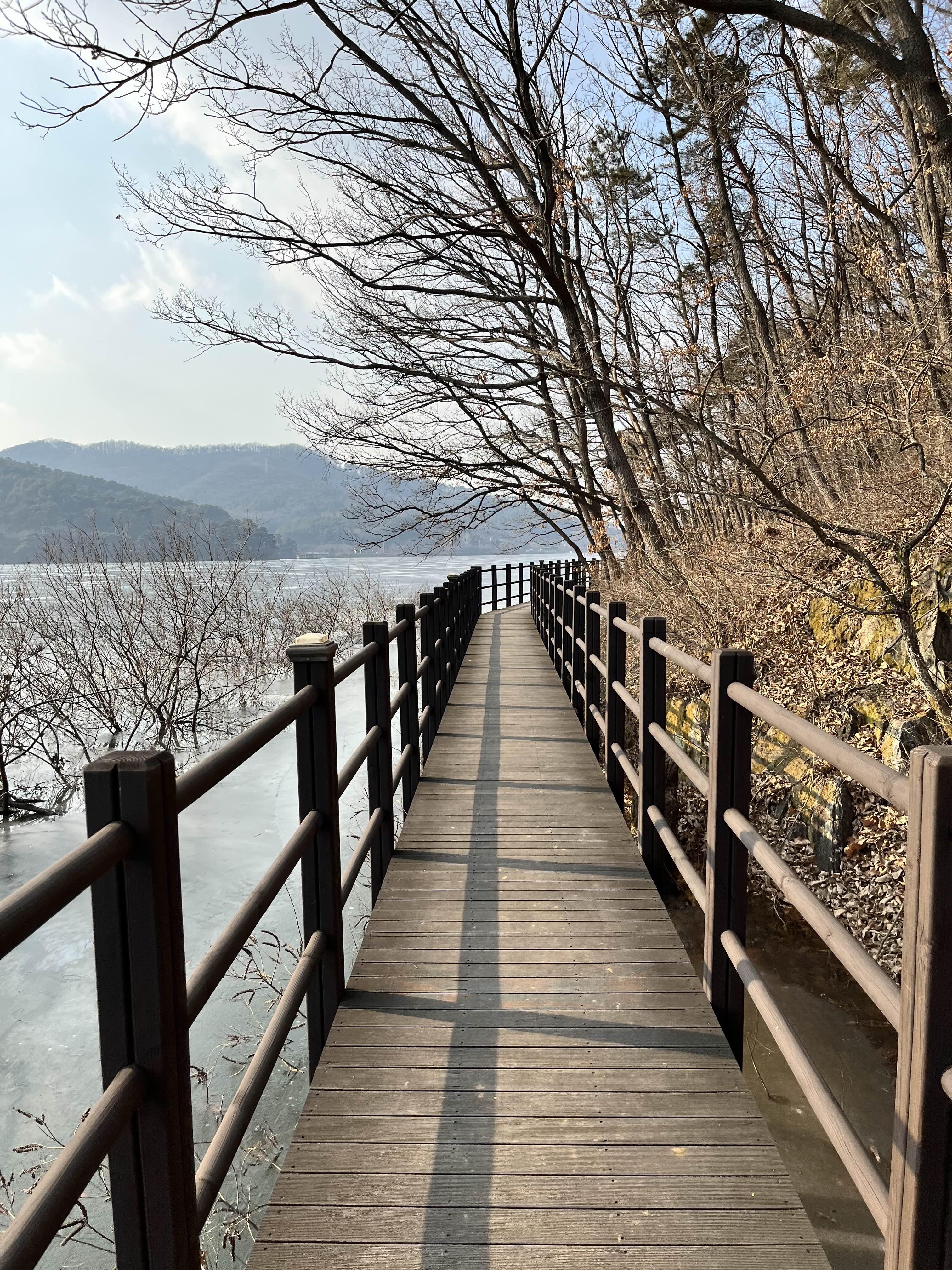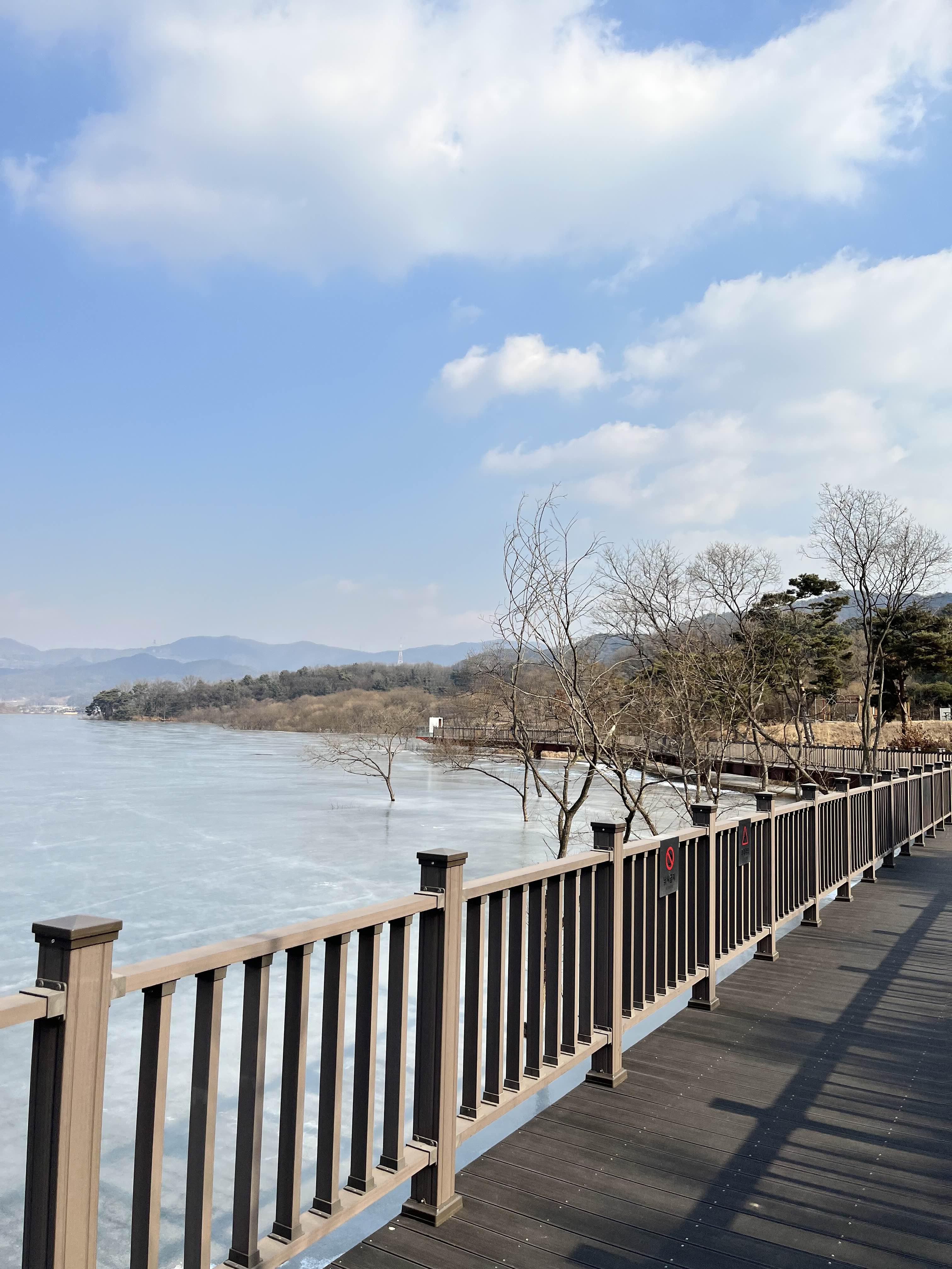수변데크 가 엄청나게 길게 쭉 연결되어있으면서, 옆은 호수가 확 틔어 있어, 너무 즐겁게 걸어보았어요