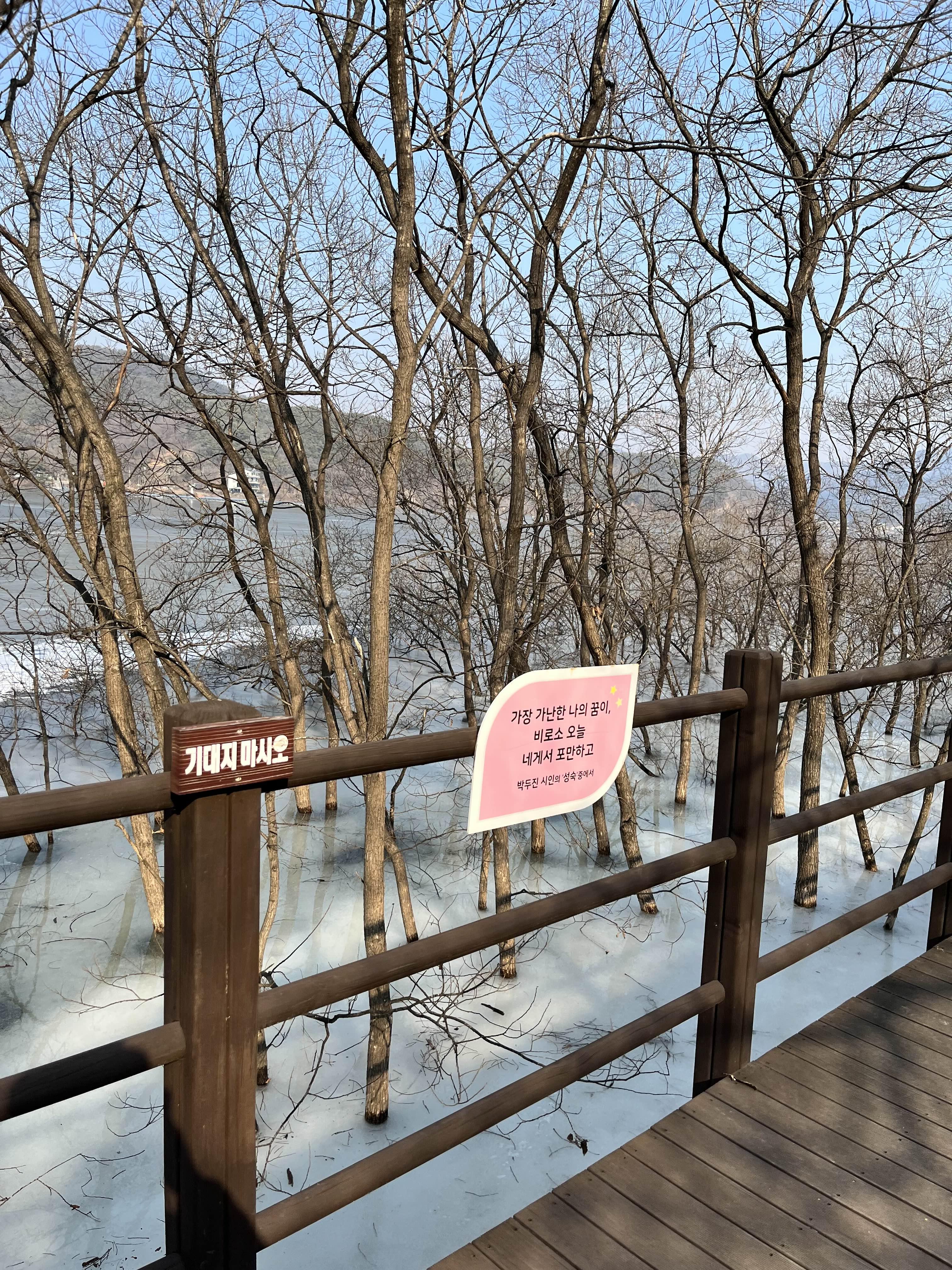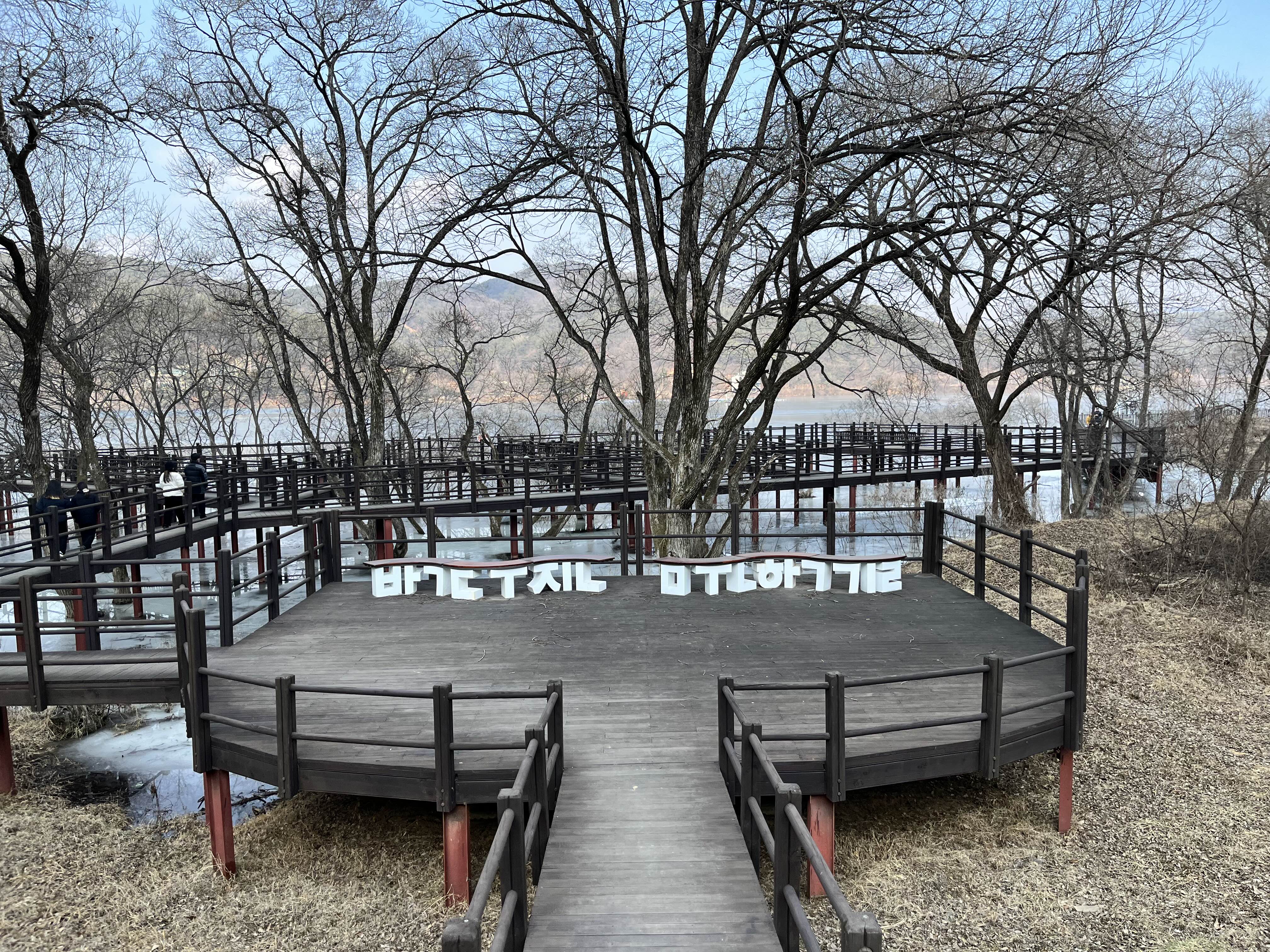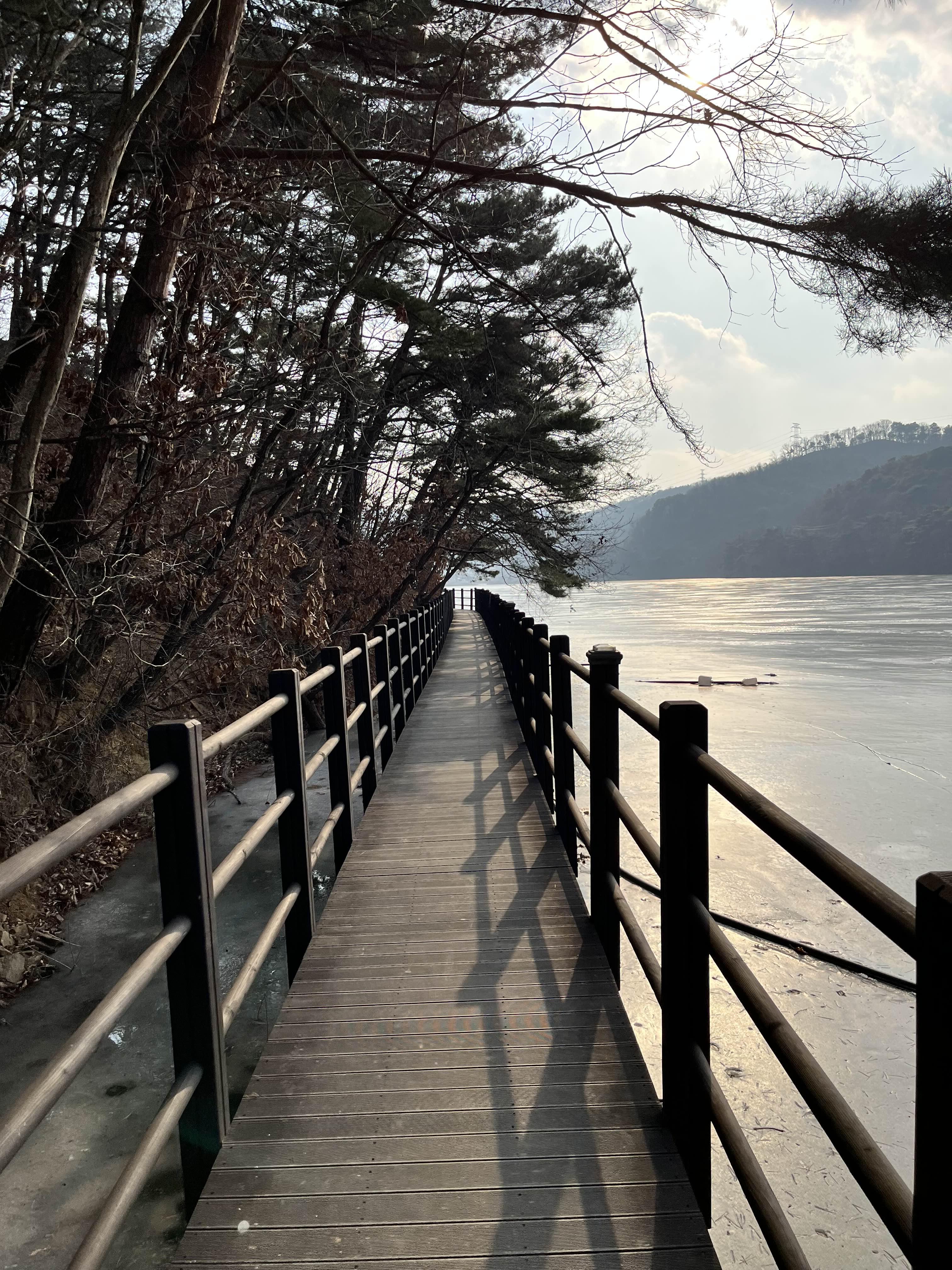 수변데크 가 엄청나게 길게 쭉 연결되어있으면서, 옆은 호수가 확 틔어 있어, 너무 즐겁게 걸어보았어요
