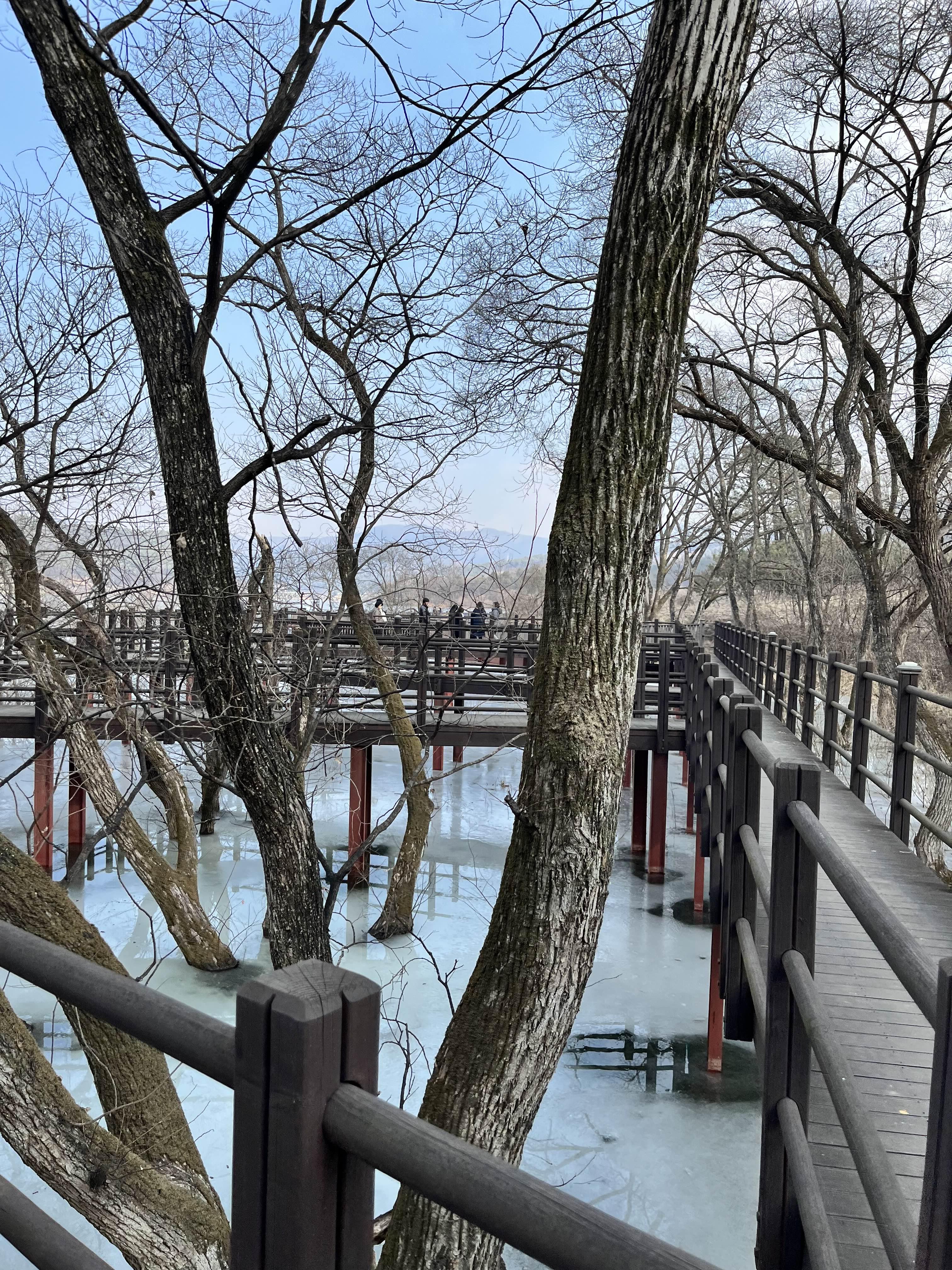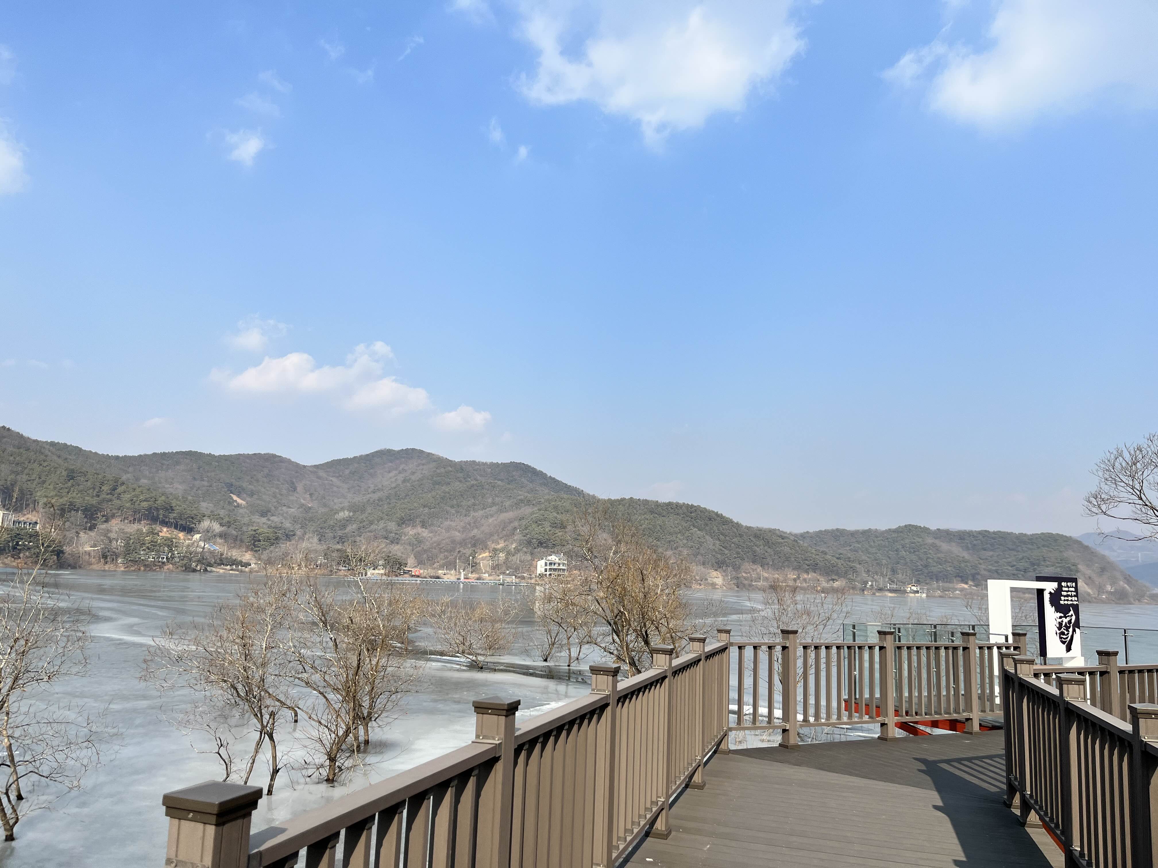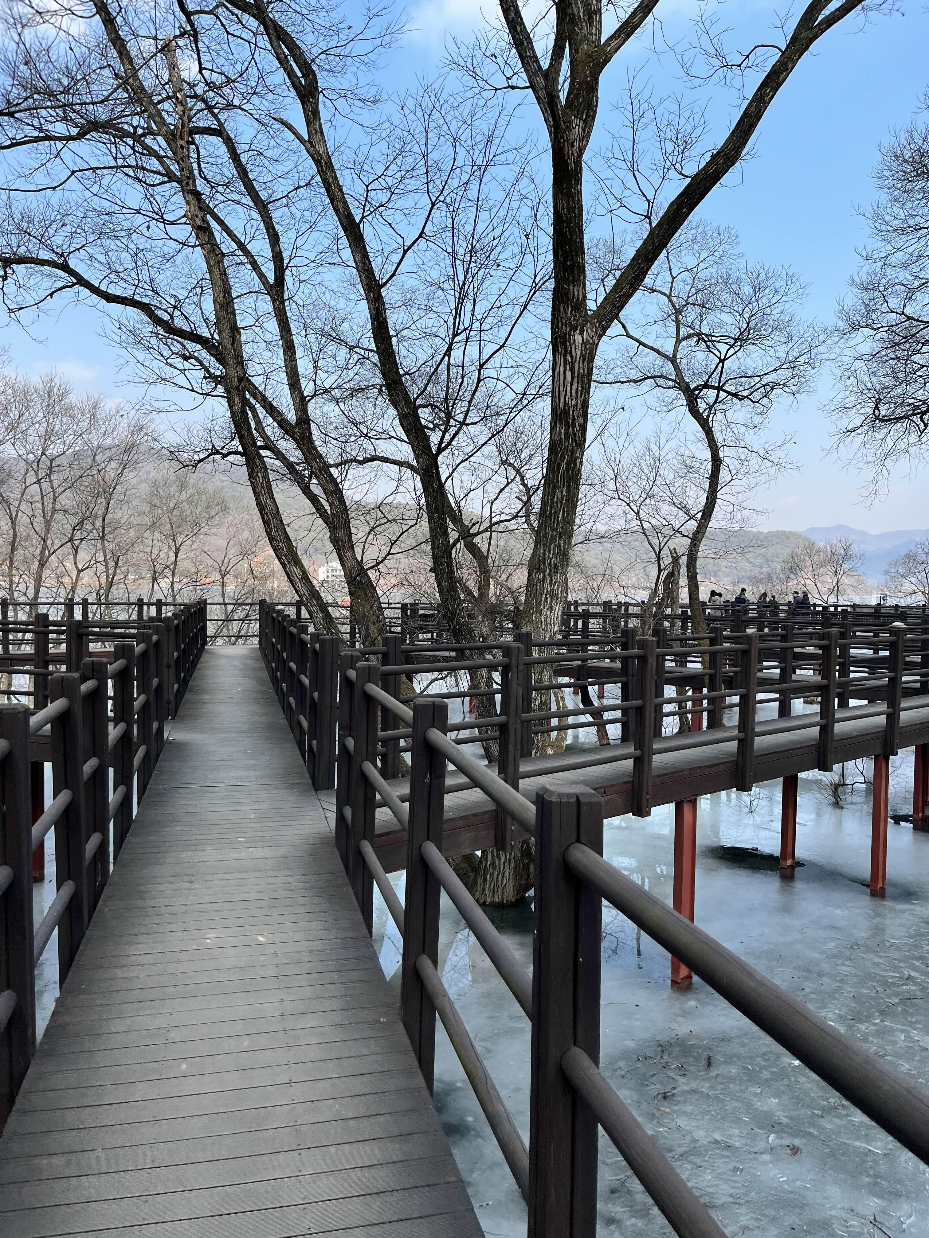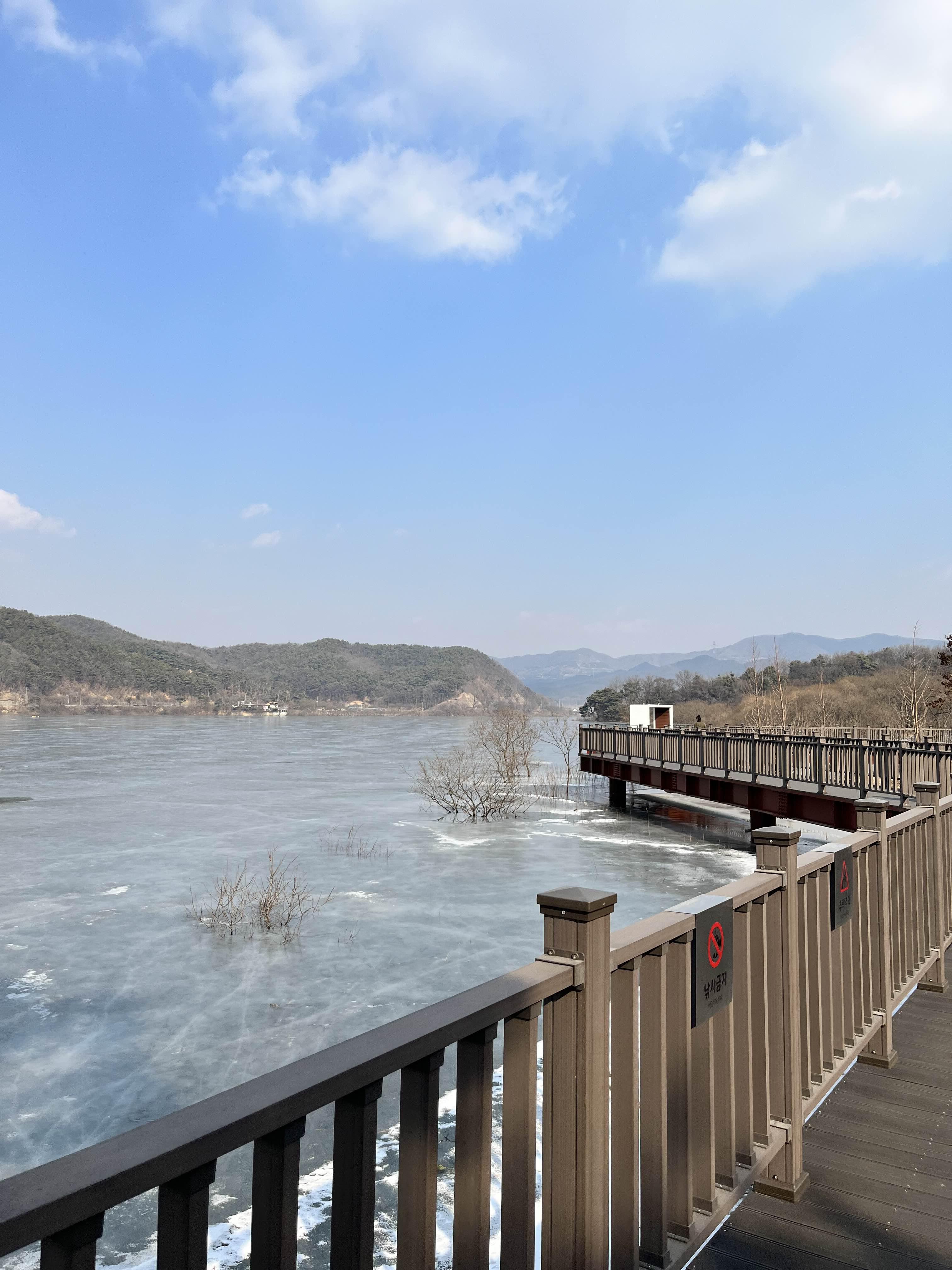 수변데크 가 엄청나게 길게 쭉 연결되어있으면서, 옆은 호수가 확 틔어 있어, 너무 즐겁게 걸어보았어요